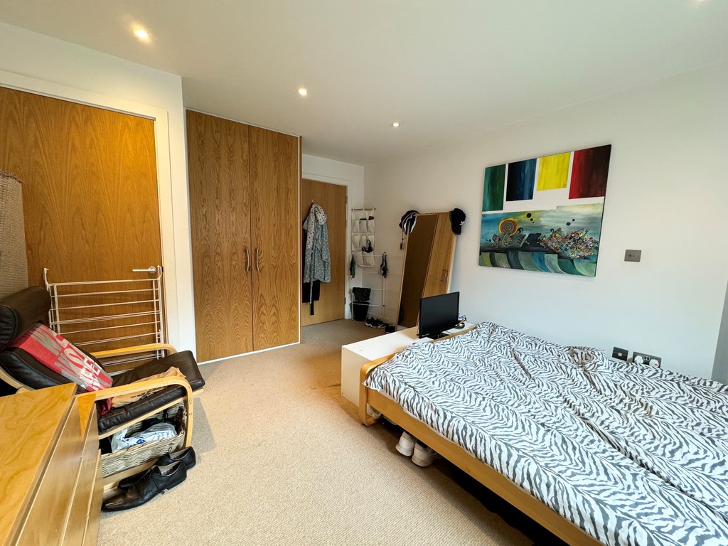 The spacious double bedroom comes fully furnished, offering ample storage and a calm environment for rest. A large, modern bathroom features contemporary fittings and a clean, high-quality finish.