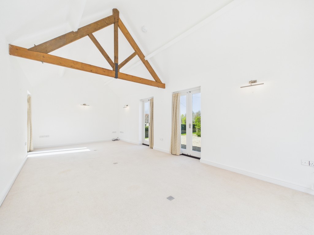LOUNGE 25'10 x12'7 French doors lead out onto the front and rear gardens, the open eaves ceiling is complemented by an exposed beam.
